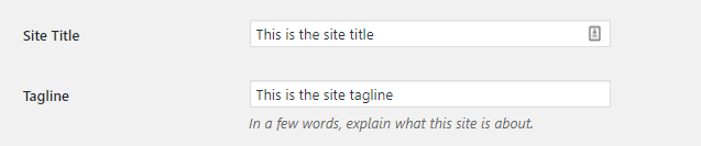 Site tagline: represents a short description of your entire website. It resembles a statement or a slogan.
