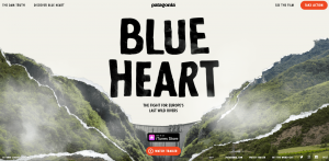 Also, the image in the header of the parent website seems to find its converse representation in the microsite. Without giving up the use of imagery that’s suggestive of nature, the microsite takes this characteristic from Patagonia.com and introduces it in blueheart.patagonia.com, enriched with new meanings.