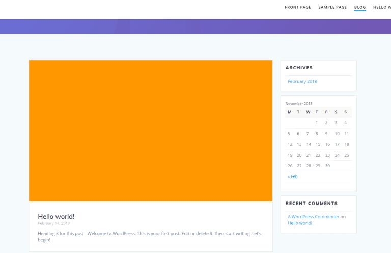 In the case below, we want to remove the sidebar including “Archives”, “Calendar” and “Recent Comments”.