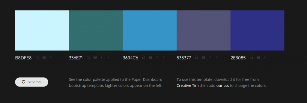 Apart from that, you can define the colors for your own template, and Colormind will adjust their hues, shades and brightness to look fine.
