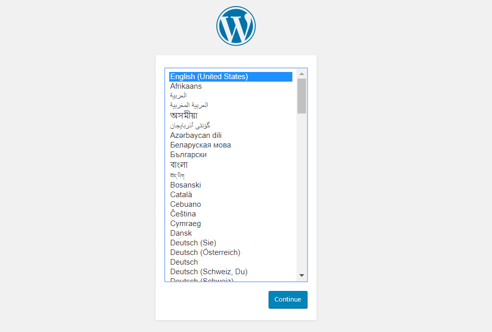- Choose the language for your WordPress. It’s recommended that you choose English by default, you can change it later anyway.