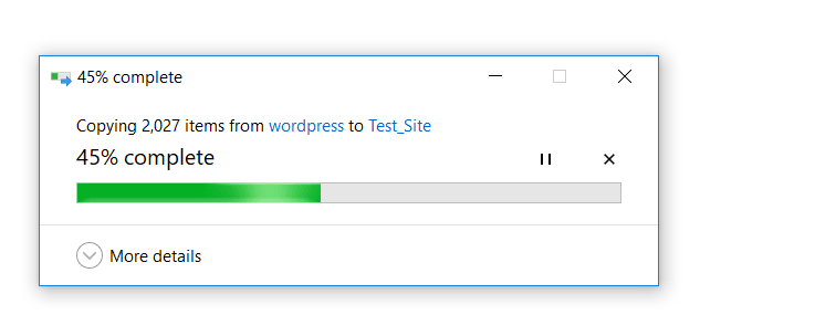 - Copy and paste the WordPress files elements from the downloads folder to the folder you destined to your new website.