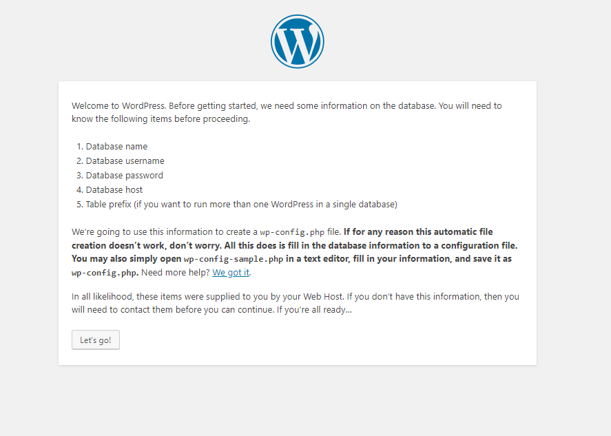 - You’ll have to access in browser localhost/name-of-the-site-folder and start the installation of WordPress for your website.