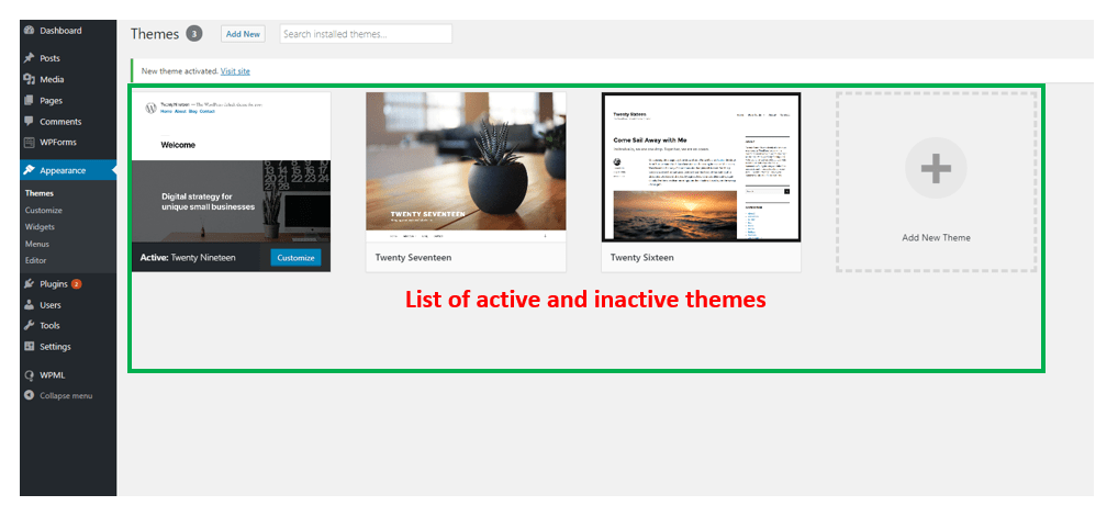 - Next, check the list of installed themes. You’ll not find the theme you’ve just deleted in the list. You have completely removed it from your WordPress.