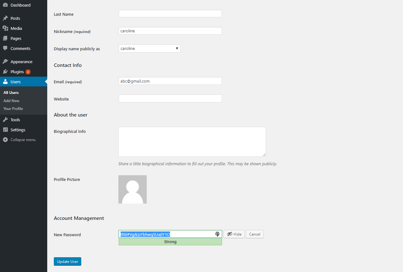 This information is useful in case you don’t remember your password to access the WordPress Admin Dashboard, or in case you want to give a new password for a user role.