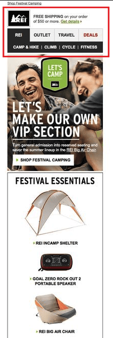 This is an email by REI, a brand that urges people to live their life outdoors. Their target audience is people who read their emails on the go and probably won’t convert or proceed with a purchase if it can’t be done right there and then.