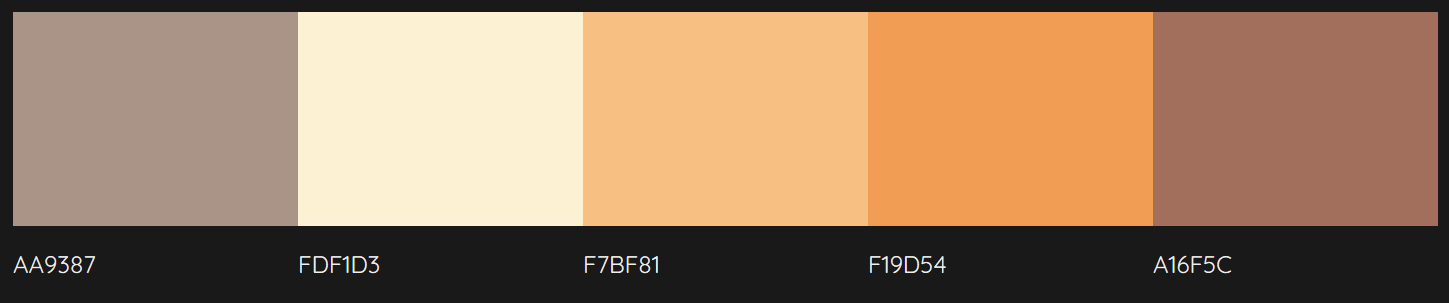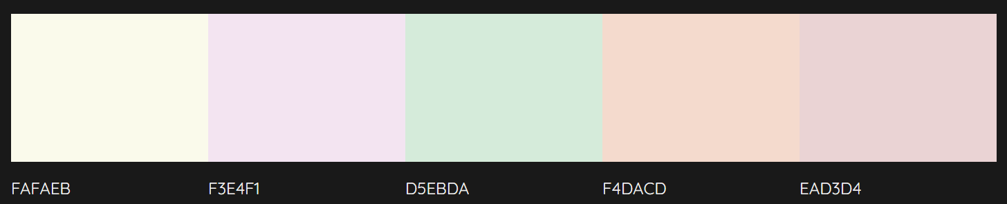 This chromatic combination is part of an article on color schemes for wellness or yoga websites. We’ll say the color combo is suitable for a wide range of feminine websites. This time, the contrast between the pink and grey is more visible and better perceived. The middle nuances are far lighter and by this, softer. Here, you can play with two accent colors for different CTA buttons, and keep the in-between hues for backgrounds. The color scheme includes some white (FCF1EF is perceived as white) and colors with much white within their composition, as opposed to clearly visible colors. You can use the color scheme as such or you can experiment, starting from its suggestions of nuances.