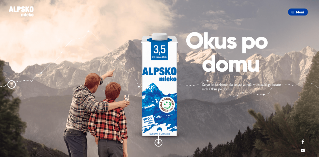 The originality resides in what the homepage displays when people scroll to see more. Different headers replace each other, at a scroll. Every header presents new images of the alpine area. As a result, the reader will be more inclined to drink that Alpine milk and start indulging in an experience that promises to expand itself once the habits settle down.