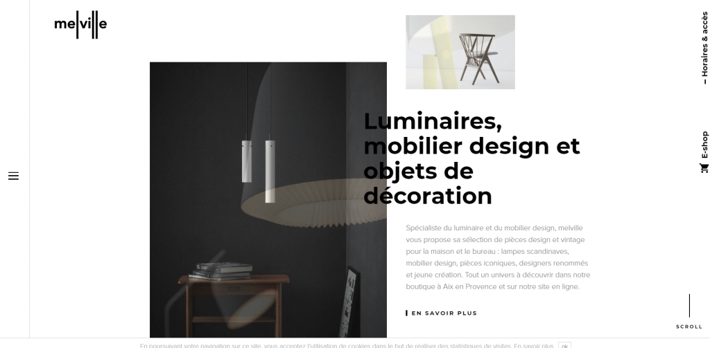 Melville Design has a website that impresses through the images and unique layout of its pages. The decoration objects are exhibited at their ultimate peak of beauty, letting the reader mentally construct an interior of his/her own, those objects included.