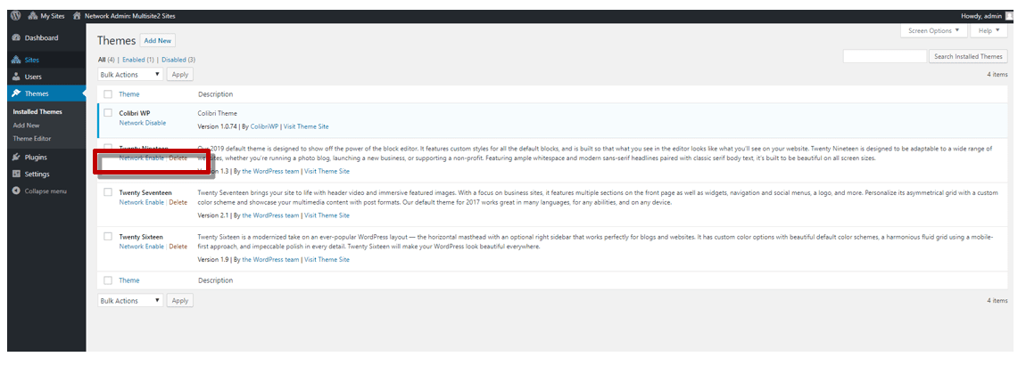 Installing themes and plugins for sites in a network