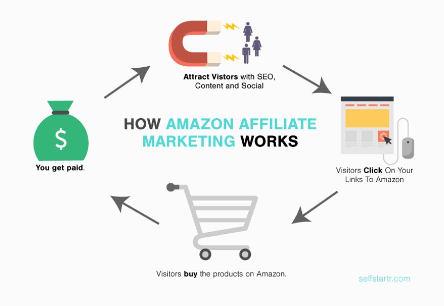 It mainly functions as a system where you generate a sale a product on another site. Every visitor you send to the product website is monitored, and you get a commission for every purchase done on the product website.