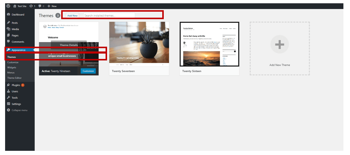 Go to Appearance -> Themes -> Add New (theme), like shown in the screenshot below: