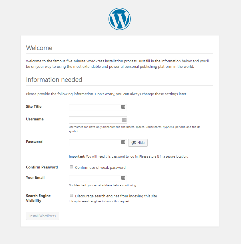 Once you’ve finished filling in the fields, click “Install WordPress”.
