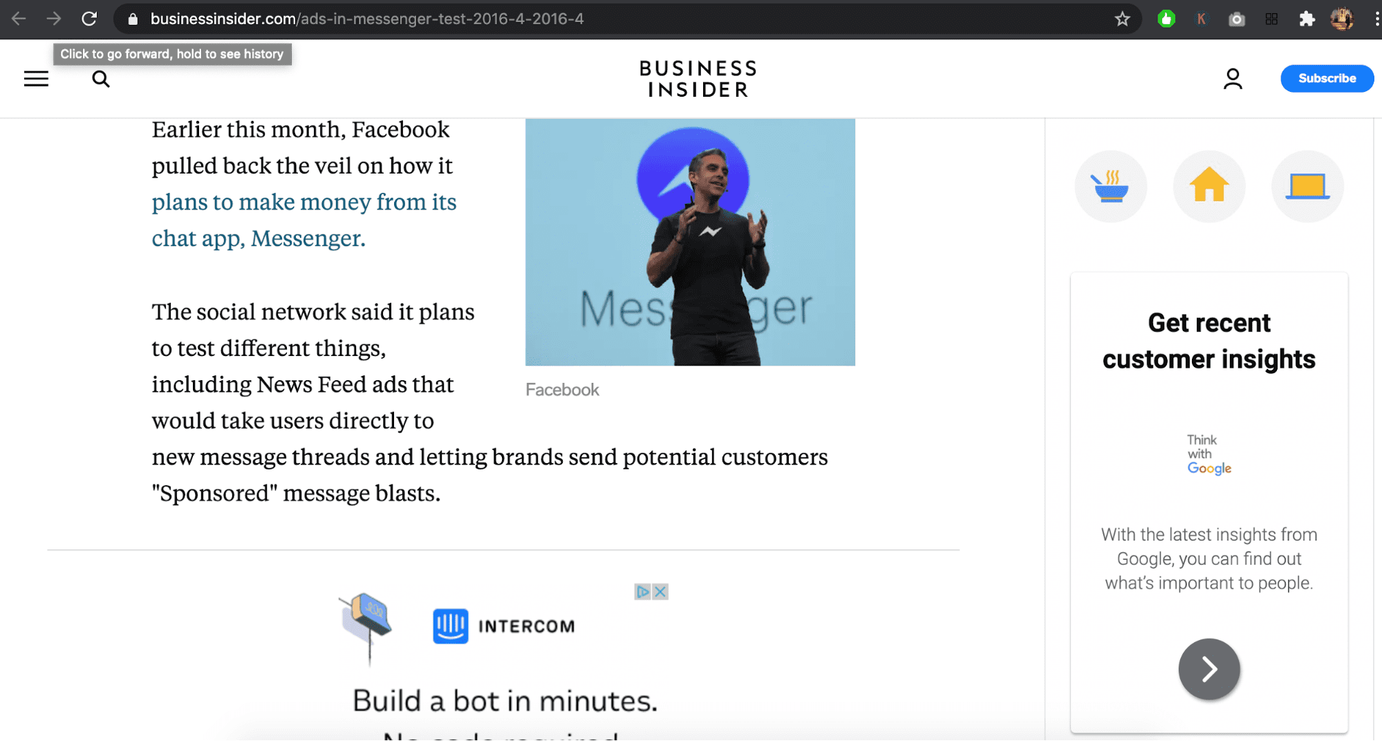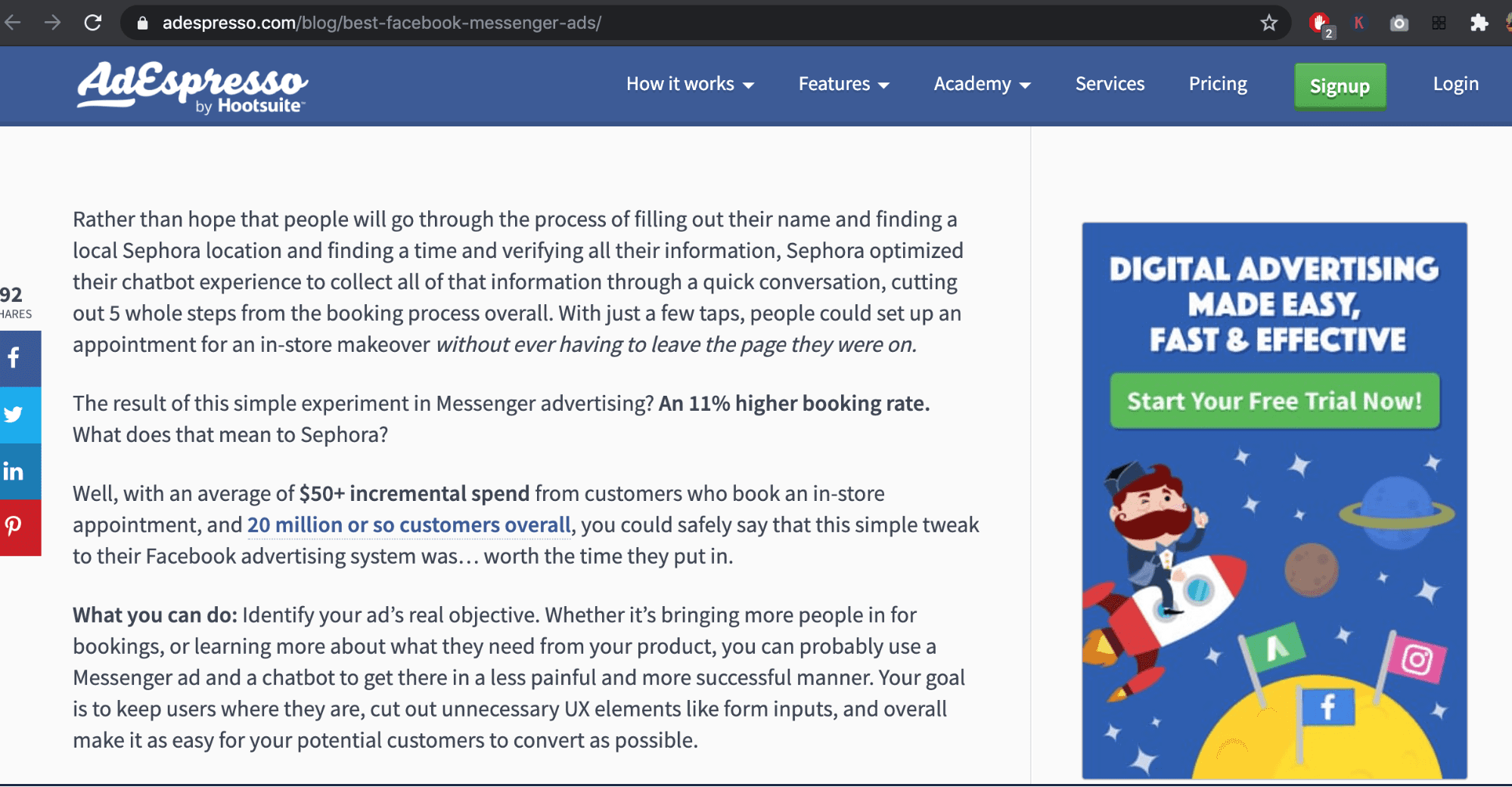A banner on your website is the classical method. How about taking a whole newsletter and placing it on the right side of a page that has high traffic? While reading a very catchy article, your user may be interested in your newsletter displaying some new services. Here are some examples of this implementation from AdEspresso by Hootsuite and Business Insider.
