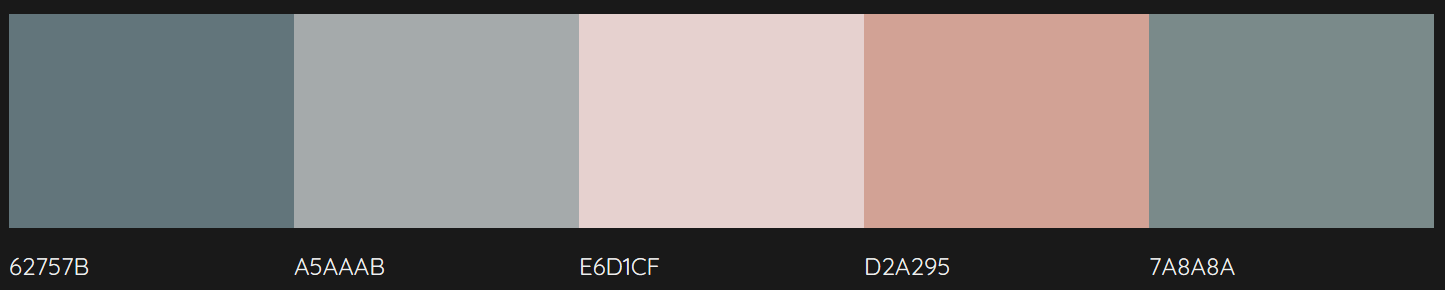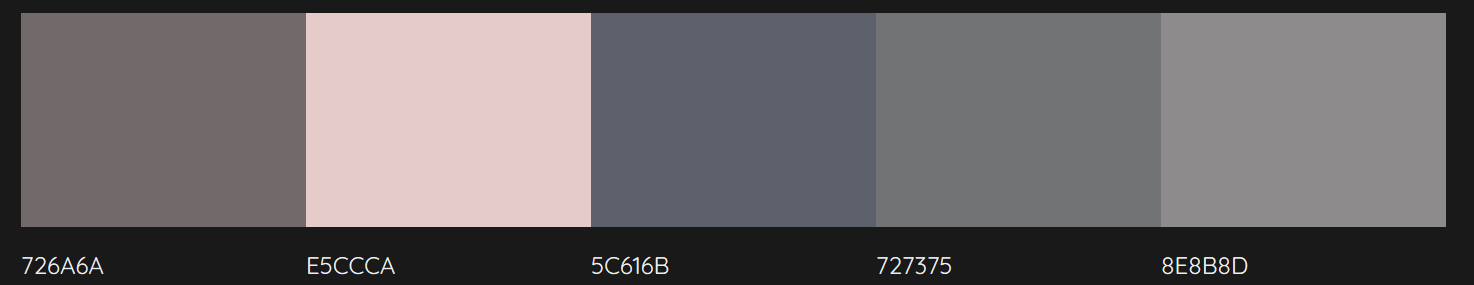 The above color palette reiterates to a certain degree some other color combos already presented in the article. The difference resides in color saturation, and how light or dark are the best-contrasting colors. The combination includes variations of pink and nuances of grey, more nuances pf grey than of pink. This makes the above color scheme almost neutral, so it fits a wide variety of niche websites. It lacks in accent color that should be applicable to CTA buttons or other items to be emphasized. Therefore, you should find an extra color that fulfils this role of accent color in the website.