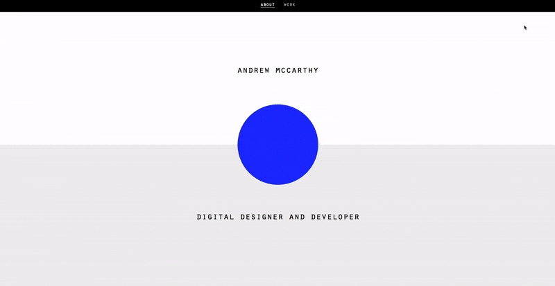 - the transition from Work to About page describes a fade-out/zoom-in effect.