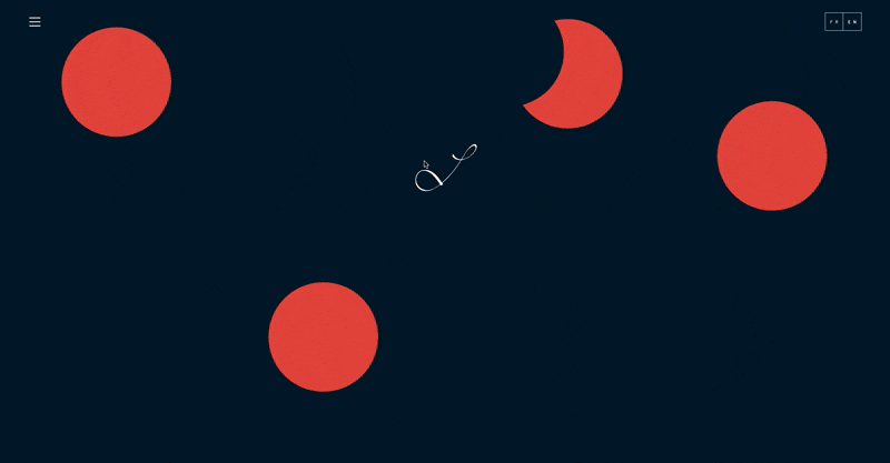 - Portfolio work is presented in balls that are mouse-sensitive.