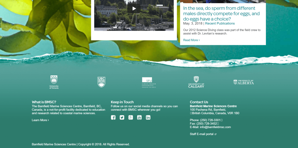 Bamfieldmsc – connecting marine sciences center with a watered footer