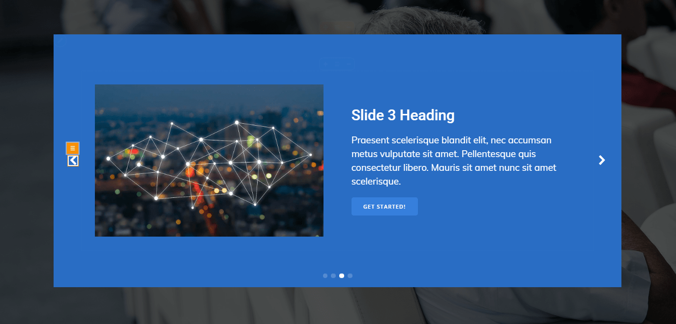 The slider is composed of two or more slides, coming onto the screen one at a time. Users go from one slide to another by pressing the left/right arrow, or the succession can be set to automatic. There’s also a Dots component, that marks the passage from one slide to another, and what’s the current slide being displayed onto the screen.