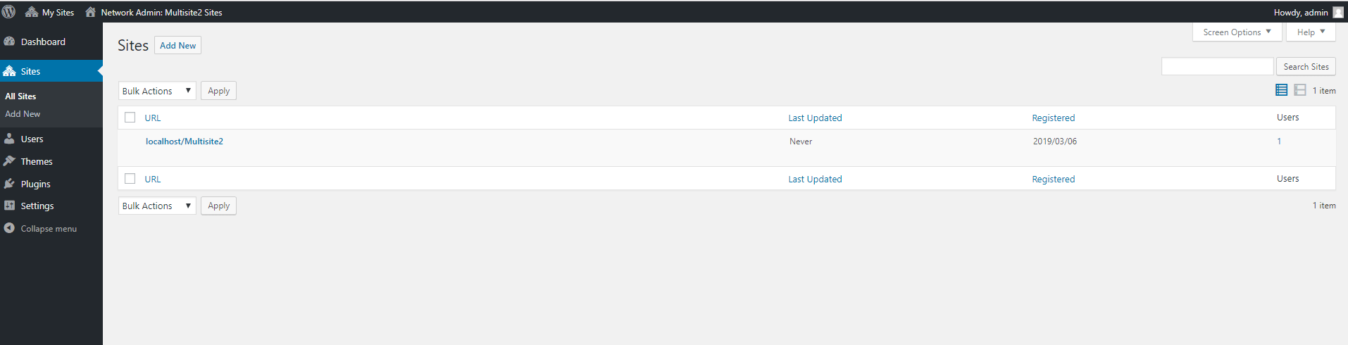 Press the Add New button next to “Sites” to start creating a new site in the network: