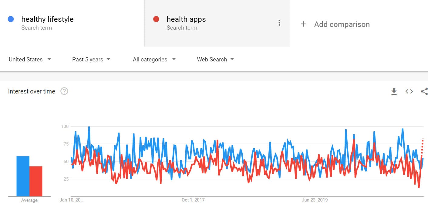 Health and fitness are among the most profitable niches for bloggers. People always need information on how to stay fit: they search for anti-aging procedures, diets, workouts, and more. Blogs about health and everything related boost massive traffic and bring profits. Just check all the health and fitness topics on Google Trends — and you’ll find that it’s true.