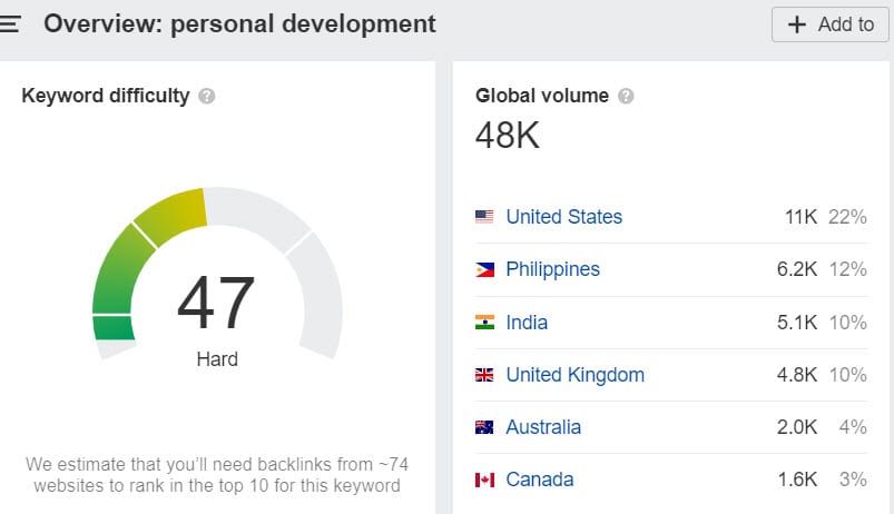 When you choose your topics, make sure to identify the low hanging fruits, the ones that have reasonable search volume, but are not too competitive. Tools such as Ahrefs or Ubersuggest can show you the competitiveness via metrics such as Keyword Difficulty or SEO Difficulty.